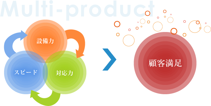当社のモットーは「多品種+スピーディー」です。絶えずお客様のニーズに応えられるよう取り組んでいます。
